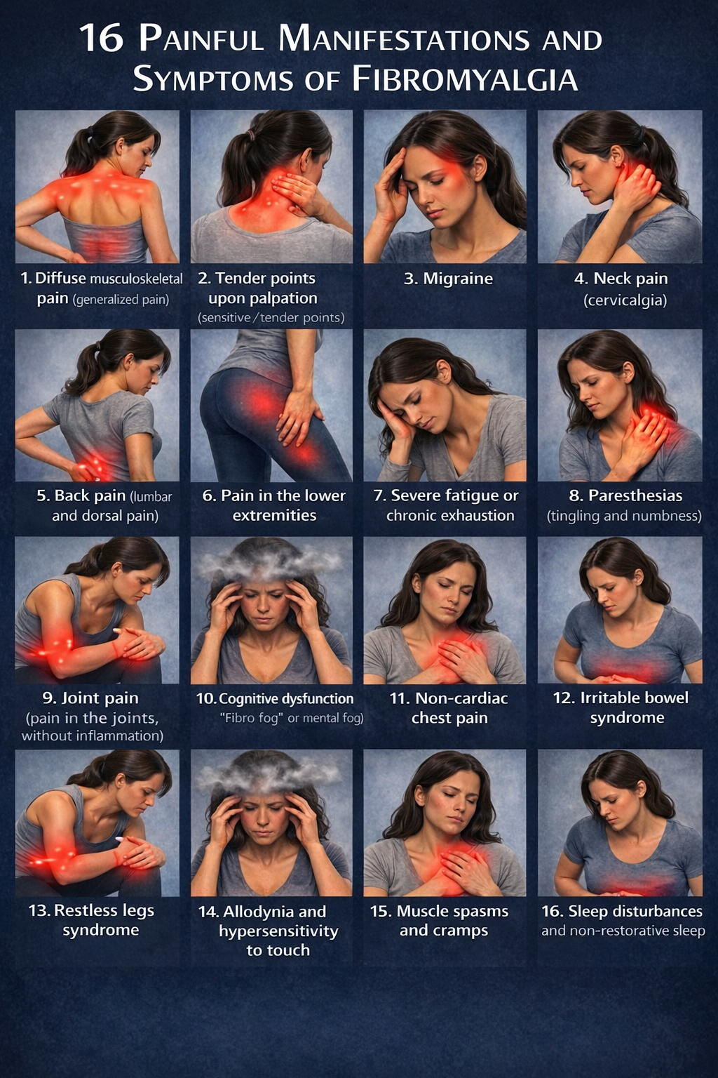16 PAINFUL MANIFESTATIONS AND SYMPTOMS OF FIBROMYALGIA –